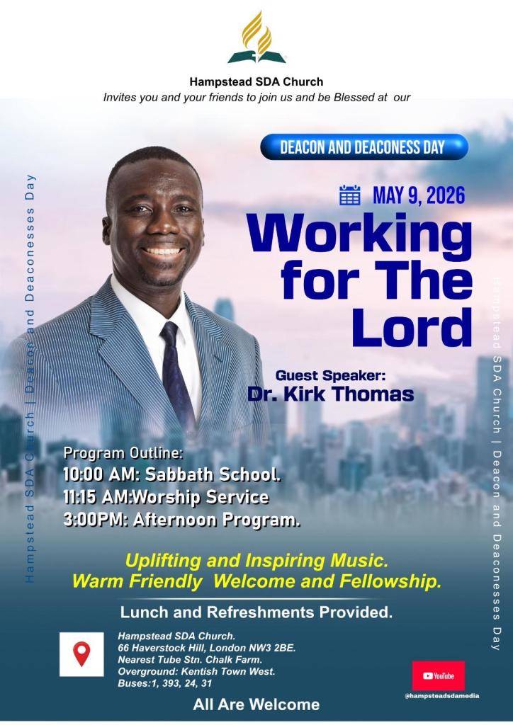 Please join us on May 9th for our Deacon & Deaconess Day. The divine service for this day will be carried out by Hampstead Deacons & Deaconesses as well as sermon by the South England Conference President Dr Kirk Thomas. The program willl be streamed to both our Youtube channel & Faceboopk page.